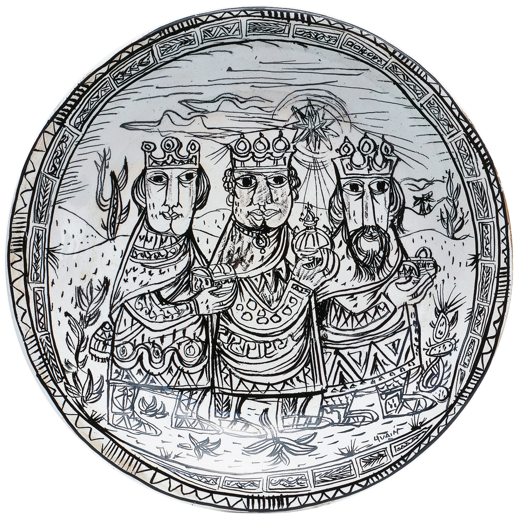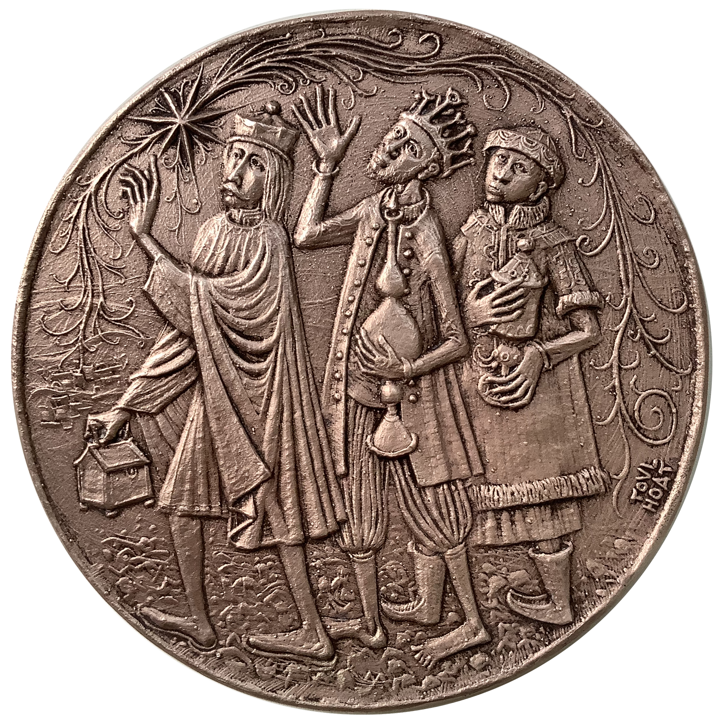 Il est intéressant de mettre en concordance ce plat de Paul Yvain avec cette médaille en bronze de Pierre Toulhoat sur le même thème des trois rois mages, Gaspard, Melchior et Balthazar.