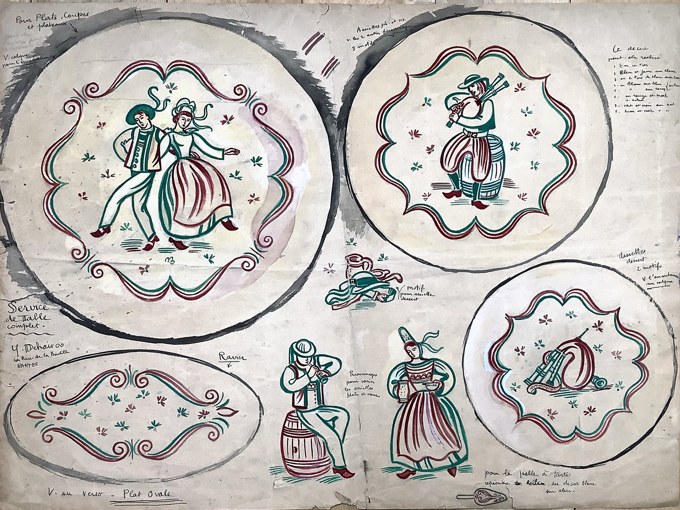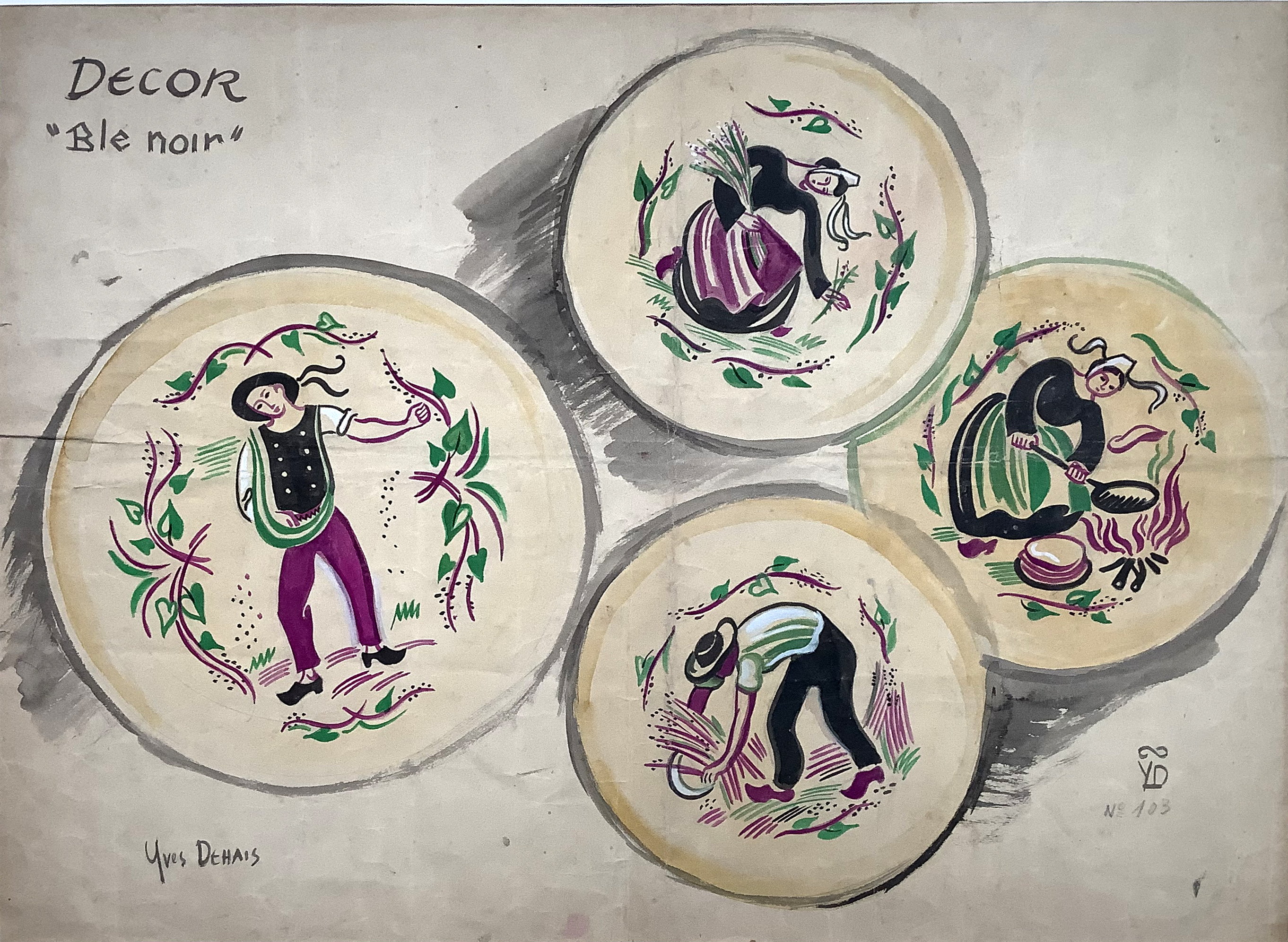 Cependant, sur les conseils de son père, ingénieur aux Établissements Bolloré à Scaër et ami de Victor Lucas, le soir après son travail il fréquente les ateliers de la nouvelle manufacture dès le mois de septembre 1946. Certains de ses projets de décors sont édités avec plus ou moins de succès.